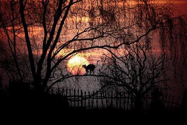 Keywords: moon moonlight full moon evening atmosphere twilight mood moonrise creepy skyline darkness mystical scary trees cat fence gloomy composing gespenstig tombstone silhouette weird black cat sky magic aesthetic scene surreal lighting photo montage mysterious outline