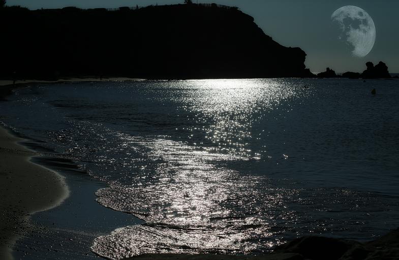 Keywords: moon sea light reflections full moon moonlight mediterranean seaside beach