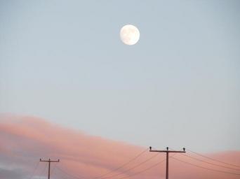 Keywords: moon sky afterglow sunset moonrise evening sky abendstimmung strommast mood power lines twilight evening clouds moonlight