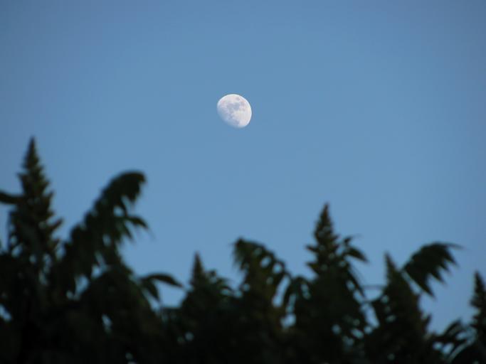 Keywords: moon sky skyscape tree plant vegetation branches blue