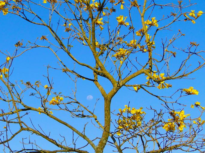 Keywords: moon sky yellow ipê farm reflection tree the moon by day moon between tree space beautiful yellow spring flowers floral