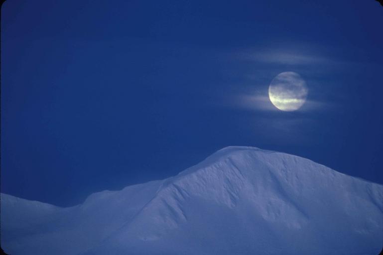 Keywords: moonrise mountains snow landscape evening twilight night scenic rise moon horizon