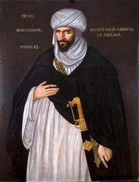 | Keywords: MoorishAmbassador to Elizabeth I.jpg author title Abd el-Ouahed ben Messaoud ben Mohammed Anoun Moorish Ambassador to Queen Elizabeth I en This image is a reproduction of an Elizabethan painting of the Moorish Ambassador who visited Queen Elizabeth I of England from Barbary in 1600 to propose an alliance against Spain The original belongs to the collection of the University of Birmingham England ~ 1600 oil oak cm 113 87 6 University of Birmingham http //www tate org uk/whats-on/tate-britain/exhibition/east-west-objects-between-cultures/east-west-room-1 other versions PD-old-100 1600s paintings in the United Kingdom 1600 portrait paintings Male 16th-century diplomats 1600 16th-century men looking at viewer in art 16th-century oil portraits of standing men at three-quarter length 1600 16th-century portraits in national costumes 1600 16th-century portrait paintings in the United Kingdom 1600 17th-century unidentified painters 1835 Ambassadors in art Baroque paintings in the United Kingdom Hand on chest in portrait paintings 1600 Latin inscriptions in England Men of Morocco Moorish clothing Moors Near East national costume in western portraits Paintings with years of production artist Portrait paintings of men wearing turbans 1600 Portrait paintings of men with swords 1600 Portraits with Latin captions University of Birmingham |