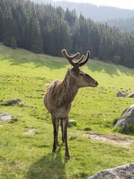 Keywords: moose animal mountains forest view tree green the road in the forest way hart