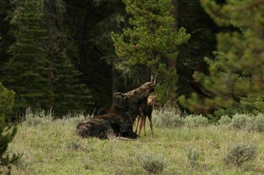 Keywords: moose cow calf wildlife animals nature portrait relaxing grazing mother baby mammals outdoors wild