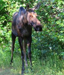 | Keywords: moose kincaid park kincaidpark sailor gray newfoundland dog graynewfoundlanddog anchorage, alaska anchoragealaska Sailor and I were at Kincaid Park yesterday and ran into this friendly, young Moose. In fact, she was so friendly that she started doing tricks for us ...(first photo below), touching her nose to her rear foot. I guess that's pretty limber for a Moose. After her performance, she walked up very close to us, and we decided to walk slowly away and then she turned and went down another path ...(second photo below). I finally remembered to try and get Sailor and a Moose in the same photograph. Sailor was so good. He just sat next to me (on a leash, of course!) and observed the Moose. Not a bark, growl, or lip smack ...(third photo below). Sailor and I were at Kincaid Park yesterday and ran into this friendly, young Moose. In fact, she was so friendly that she started doing tricks for us ...(first photo below), touching her nose to her rear foot. I guess that's pretty limber for a Moose. After her performance, she walked up very close to us, and we decided to walk slowly away and then she turned and went down another path ...(second photo below). I finally remembered to try and get Sailor and a Moose in the same photograph. Sailor was so good. He just sat next to me (on a leash, of course!) and observed the Moose. Not a bark, growl, or lip smack ...(third photo below). |