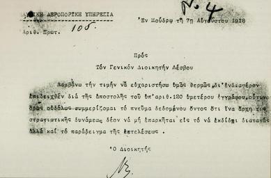 | Keywords: Moraitinis apantisi 1918.png el Η α άντηση του Αριστείδη ωταϊτίνη στον Γενικό Διοικητή Λέσβου για τις ριψοκίνδυνες α οστολές ου αναλαμβάνει εναντίων της τουρκο-γερμανικής αερο ορίας 7 Αυγούστου 1918 2014-12-24 Hellnic Air Force Museum Tatoi Greece author other versions PD-old-70-1923 Uploaded with UploadWizard Hellenic Air Force Museum |
