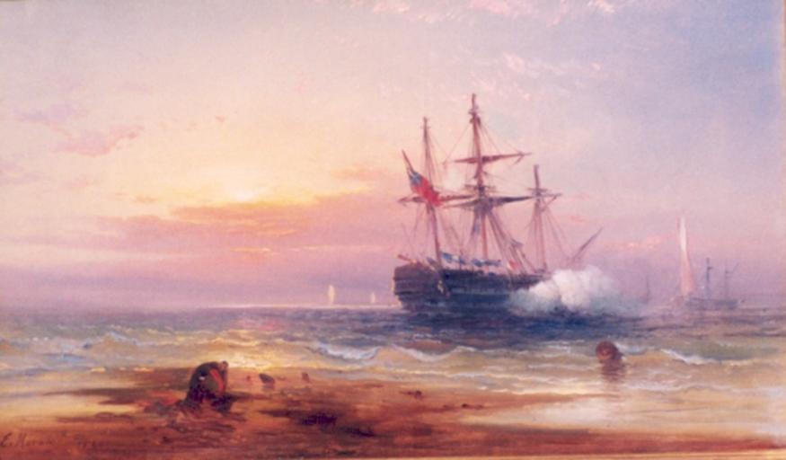 Keywords: Moran Salute at Sunset.jpg Artwork creator Edward Moran ca 1865 oil canvas cm 12 20 object history credit line accession number http //www vallejogallery com/item php title Salute_at_Sunset category id 740 PD-old-100 19th-century sailing ships in paintings Paintings of sunsets Edward Moran 19th-century oil on canvas paintings 1860s paintings 19th-century ships Location of museum or gallery missing Paintings of seascapes with sunset |