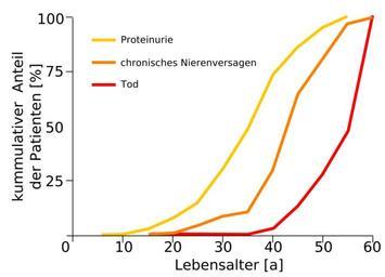 | Keywords: Morbus Fabry renal affairs.svg Der kummulative Anteil an Patienten mit Morbus Fabry die Proteinurie gelb und chronisches Nierenversagen rot aufweisen Die rote Kurve ist die à berlebensrate data taken from M H Branton R Schiffmann u a Natural history of Fabry renal disease influence of alpha-galactosidase A activity and genetic mutations on clinical course In Medicine Band 81 Nummer 2 März 2002 S 122 “138 ISSN 0025-7974 PMID 11889412 own work with Inkscape 2011-09-16 own data from M H Branton R Schiffmann u a Natural history of Fabry renal disease influence of alpha-galactosidase A activity and genetic mutations on clinical course In Medicine Band 81 Nummer 2 März 2002 S 122 “138 ISSN 0025-7974 PMID 11889412 Cc-zero Fabry disease |