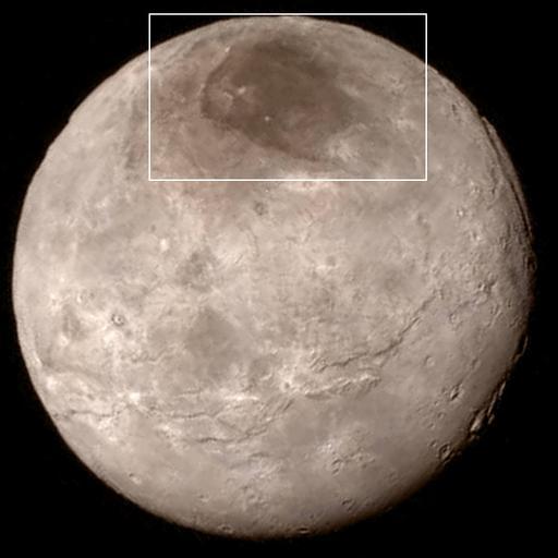 | Keywords: Mordor Macula context.png en Mordor Macula is located at Charon A large dark area about 475 km in diameter near the north pole of Charon Pluto's largest moon It is named after the shadow lands in J R R Tolkien's The Lord of the Rings The name is not official; the discovery team has been using the name informally and may submit it to the IAU It is not currently known what Mordor is It may be frozen gases captured from Pluto's escaping atmosphere a large impact basin or both 2015-07-13 File Nh-charon jpg PlanetUser image courtesy of NASA other versions Custom license marker 2015 12 16 Photos of Charon by New Horizons Uploaded with UploadWizard |