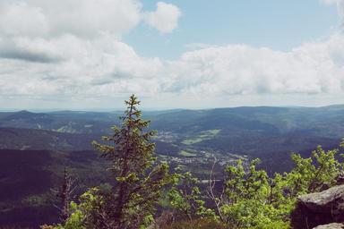 Keywords: more destination view viewpoint mountain leisure benefit from plateau places of interest marketing tourism holiday hiking advertising bavarian forest forest landscape trees rock distant view foresight