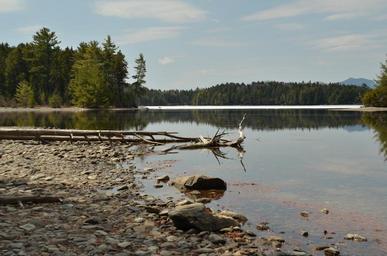 Keywords: more forest tree beach pebble tree stump water landscape nature