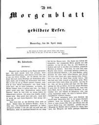 | Keywords: Morgenblatt fuer gebildete Leser 1842 401.jpg Morgenblatt_fuer_gebildete_Leser_1842_ jpg 400 402 Morgenblatt für gebildete Leser Stuttgart und Tübingen Cotta UB Darmstadt Signatur Zs 3042 1842 Annette von Droste-Hülshoff und andere Books by Annette von Droste-Hülshoff Morgenblatt für gebildete Stände PD-old |