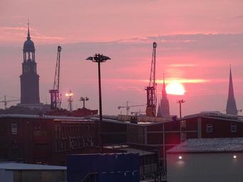 Keywords: morgenrot sunrise dawn skies hamburg red sky city dusk evening sun pink sky