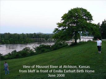 | Keywords: Moriverbridge.jpg en View of Missouri River towards Missouri showing the two bridges connecting Atchison Kansas to Buchanan County Missouri Smaller railroad bridge in foreground was constructed in 1880's with my gr-grandfather John Recht involved in the construction The larger bridge was constructed in about 1937 is now called the Amelia Earhart Bridge in her honor As labelled the photo was taken from the street in front of her birth home in Atchison Kansas Photo taken by submitter Tom Thomas 2008-06-18 Amelia Earhart Bridge over the Missouri River in Atchison Kansas watermark Missouri River Atchison Kansas Amelia Earhart |