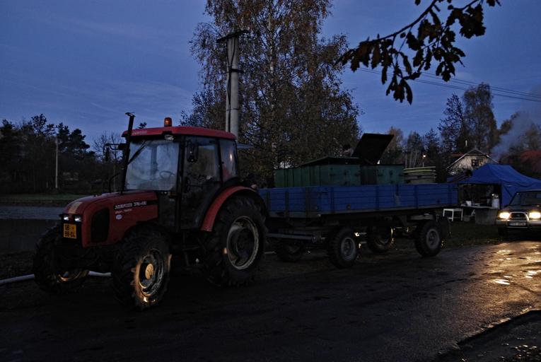 Keywords: morning dawn harvesting tractor car vats south bohemia ledenice dam pond
