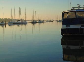 Keywords: morning dawn sunrise landscape river water boats sailboats yachts sunrise landscape peaceful scenery outdoor