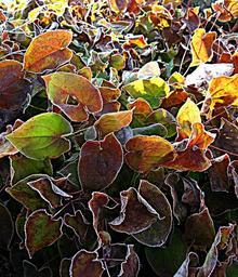 MAKE A MEME View Large Image morning hour epimedium fairy flower shrub leaves ripe ice deposition frost march