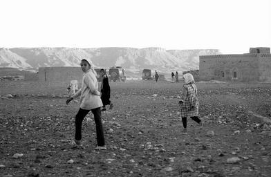 Keywords: morocco africa rally desert marroc sand dunes car traces of tyres landscape nature children people black and white women person