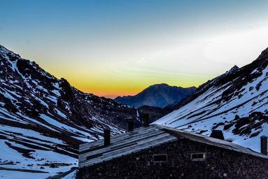 Keywords: morocco twilight mountain sunset snow landscpe cabin