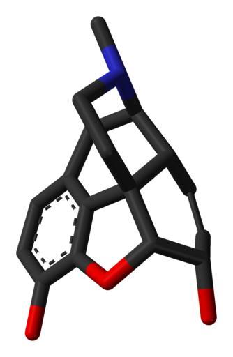 | Keywords: Morphine-from-xtal-3D-sticks-skeletal.png Stick model of the morphine molecule C<sub>17</sub>H<sub>19</sub>NO<sub>3</sub> X-ray crystallographic from cite journal L Gylbert 1973 The crystal and molecular structure of morphine hydrochloride trihydrate Acta Cryst B29 9 August 1630-1635 10 1107/S0567740873005169 Own 2008-09-10 Ben Mills Benjah-bmm27 Images by Ben Mills Morphine | ||||