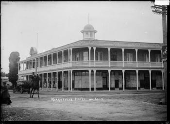 | Keywords: blackandwhite monochrome architecture building outdoor photo border black and white Morrinsville Hotel, showing the two storeyed building, with windowed turret. There is a man on horseback, and a touring car centre left. Photograph taken by William Archer Price. Inscriptions: Inscribed - Photographer's title on negative -bottom centre: Morrinsville Hotel. No. 621.H. Quantity: 1 b&w original negative(s). Physical Description: Dry plate glass negative 6.5 x 4.5 inches Morrinsville Hotel, ca 1916. Price, William Archer, 1866-1948 :Collection of post card negatives. Ref: 1/2-001141-G. Alexander Turnbull Library, Wellington, New Zealand. natlib.govt.nz/records/23120816 Morrinsville Hotel, showing the two storeyed building, with windowed turret. There is a man on horseback, and a touring car centre left. Photograph taken by William Archer Price. Inscriptions: Inscribed - Photographer's title on negative -bottom centre: Morrinsville Hotel. No. 621.H. Quantity: 1 b&w original negative(s). Physical Description: Dry plate glass negative 6.5 x 4.5 inches Morrinsville Hotel, ca 1916. Price, William Archer, 1866-1948 :Collection of post card negatives. Ref: 1/2-001141-G. Alexander Turnbull Library, Wellington, New Zealand. natlib.govt.nz/records/23120816 |