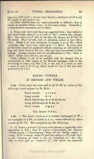 Keywords: Morris-Jones Welsh Grammar 0085.png A scan of the book A Welsh Grammar Historical and Comparative by John Morris-Jones Morris-Jones_Welsh_Grammar_ png 0084 0086 http //www archive org/details/welshgrammarhist00joneuoft 1913 John Morris-Jones 1864 “1929 Author died more than 70 years ago - public domain PD-old Welsh Grammar by John Morris-Jones