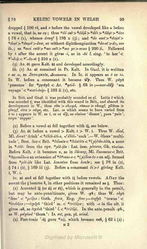 | Keywords: Morris-Jones Welsh Grammar 0099.png A scan of the book A Welsh Grammar Historical and Comparative by John Morris-Jones Morris-Jones_Welsh_Grammar_ png 0098 0100 http //www archive org/details/welshgrammarhist00joneuoft 1913 John Morris-Jones 1864 “1929 Author died more than 70 years ago - public domain PD-old Welsh Grammar by John Morris-Jones |