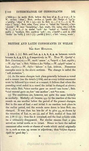 | Keywords: Morris-Jones Welsh Grammar 0161.png A scan of the book A Welsh Grammar Historical and Comparative by John Morris-Jones Morris-Jones_Welsh_Grammar_ png 0160 0162 http //www archive org/details/welshgrammarhist00joneuoft 1913 John Morris-Jones 1864 “1929 Author died more than 70 years ago - public domain PD-old Welsh Grammar by John Morris-Jones |