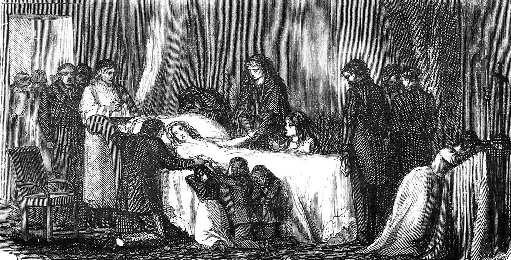 | Keywords: Mort de la reine Louise-Marie le 11 octobre 1850.jpg Louise de Belgique Ostende le 11 octobre 1850 ” <font style font-family Georgia serif >Ă genoux on aperçoit de gauche Ă droite le roi LĂ©opold I<sup>er</sup> les trois enfants du couple Charlotte LĂ©opold et Philippe La mère de Louise la reine Marie-AmĂ©lie lui tient la main gauche Son père le roi Louis-Philippe est mort en exil en Angleterre seulement deux mois plus tĂ´t le 26 aoĂ»t 1850 </font> 1868 ThĂ©odore Juste Histoire de Belgique tome III Bruylant-Christophe Bruxelles 1868 p-page 267 draughtsman Creator Eugène Verdyen engraver William Brown other fields wood engraving Information field Size Size cm 6 12 bottom left VERDYEN bottom right W BROWN Information field Original caption Mort Ă Ostende de Louise d'OrlĂ©ans reine des Belges 11 octobre 1850 Dodeeric other versions PD-old-70-1923 Louise of OrlĂ©ans House of Saxe-Coburg and Gotha Belgium 1850 in Belgium Wood engravings Engravings by Dodeeric ImageNote 1 707 602 165 172 2692 1372 2 LĂ©opold Ier ImageNoteEnd 1 ImageNote 2 865 636 188 135 2692 1372 2 Louise-Marie ImageNoteEnd 2 ImageNote 3 1013 854 111 124 2692 1372 2 Charlotte ImageNoteEnd 3 ImageNote 4 1195 814 121 148 2692 1372 2 LĂ©opold ImageNoteEnd 4 ImageNote 5 1309 868 148 124 2692 1372 2 Philippe ImageNoteEnd 5 ImageNote 6 1265 279 168 168 2692 1372 2 AmĂ©lie ImageNoteEnd 6 |