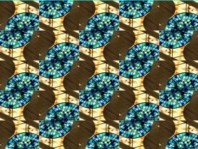 Keywords: mosaic mosaic table pattern turquoise artfully ceramic tile decorative art structure texture mosaic stones deco background contrast hispanic light shadow shadow play symmetry symmetrically colorful color kaleidoscope reflections mirroring