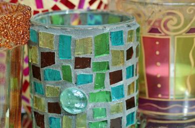 Keywords: mosaic tealight tea light glass candles decoration lighting romantic colorful mood candlestick glasdeko atmosphere lights stained glass deco glass mosaic detail close