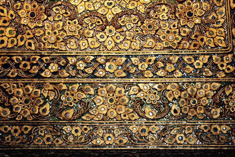 Keywords: mosaic tiles gold pattern wood wall artfully art decorative color ornament jewellery structure background texture architecture