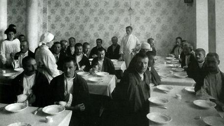 | Keywords: Moscow, 1914 - the wounded dining.jpg World War I in Russia Wounded men dining in a hospital Раненые Пе вой и овой Обед в московском госпитале осква в фотог афиях 2004 ISBN 5874171584 1914 Uknown reporter PD-RusEmpire 1914 in Moscow Dining rooms Moscow hospitals in World War I |