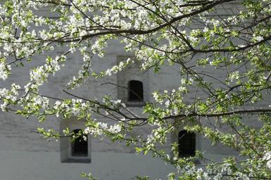 Keywords: moscow building spring tree green leaves branches blossoms