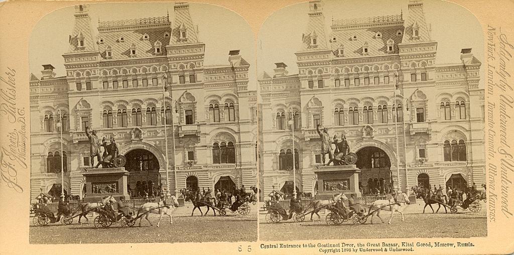 | Keywords: Moscow, Russia. — Stereo card 06.jpg Central Entrance to the Gistinnoi Dvor the Great Bazaar Kitai Gorod Moscow Russia Цент альный Вход в Гостиный дво Большой Рынок и Китай го од осква Россия turn of the century 20 http //unrealalex livejournal com unknown PD-old Stereo cards of Russia Images uploaded by Steven Pavlov from various sources |