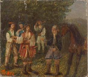 | Keywords: Moški v narodnih nošah (1852).jpg author 1852 oil canvas cm 13 15 Institution National Museum of Slovenia http //www nms si/index php option com_content view category layout blog id 81 Itemid 27 lang en Zbirka slik Narodnega muzeja Slovenije PD-old-100 1852 paintings in Slovenia Paintings by unknown painters in Slovenia 19th-century paintings in the National Museum of Slovenia 19th-century oil on canvas paintings in Slovenia | ||||