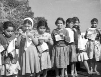 | Keywords: algeria bible sewing girls class embroidery mennonite board missions groupshot people blackandwhite monochrome team sport sport group performance black and white Caption: 1962. Moslem girls who came to sewing and bible class on Thursdays. The girls are (L to R) Nassura, Saliha, Malika, Fathia, Zoulikha and Zoulika with their embroidery. Citation: Mennonite Board of Missions. Photographs. Algeria Pax, 1955-1963. IV-10-7.2 Box 1 folder 27, photo #65. Mennonite Church USA Archives - Goshen. Goshen, Indiana. Caption: 1962. Moslem girls who came to sewing and bible class on Thursdays. The girls are (L to R) Nassura, Saliha, Malika, Fathia, Zoulikha and Zoulika with their embroidery. Citation: Mennonite Board of Missions. Photographs. Algeria Pax, 1955-1963. IV-10-7.2 Box 1 folder 27, photo #65. Mennonite Church USA Archives - Goshen. Goshen, Indiana. |