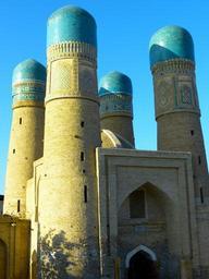 Keywords: mosque minor choir four minarets minaret pray bukhara uzbekistan