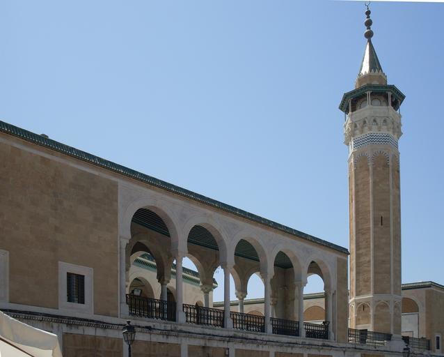 Keywords: Mosquée Saheb Ettabaa.JPG fr Médina de Tunis Mosquée Youssef Saheb Ettabàa Place Halfaouin own Rais67 2009 36 48 28 28 N 10 10 0 71 E region TN Colonnade of the Saheb Ettabaâ Mosque Minaret of the Saheb Ettabaâ Mosque