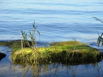 Keywords: moss lake water blue stone large green bank