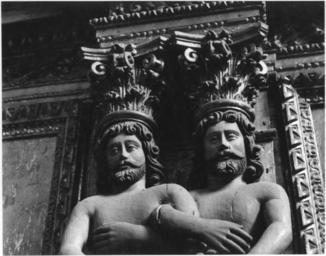 | Keywords: talha portugal mosteiro são martinho tibães robert smith fundação calouste gulbenkian fundaçãocaloustegulbenkian braga biblioteca de arte bibliotecadearte Cadeiral do Coro: pormenor das cariátides. Talha dos séculos 17-18. Fotógrafo: Robert Chester Smith (1912-1975). Data de produção da fotografia original: 1962-1964. [CFT008.0255.ic] Cadeiral do Coro: pormenor das cariátides. Talha dos séculos 17-18. Fotógrafo: Robert Chester Smith (1912-1975). Data de produção da fotografia original: 1962-1964. [CFT008.0255.ic] |