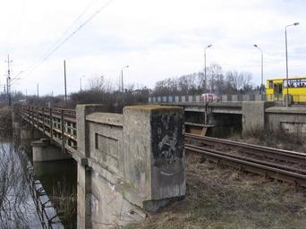 | Keywords: MostyStrachocinskie-kolejowy i drogowy.jpg Wrocław Poland Strachocińskie Bridges over Odra River - Widawa River Channel rail bridge foreground road bridge background 2006-04-01 own assumed Julo Strachocińskie Bridges Rivers in Wrocław Railway line 292 Poland Wrocław Strachocin |