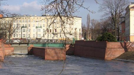 Keywords: MostySwKlary2006kwie6.jpg Wrocław Poland St Clare Bridge Most św Klary view from Bielarska Island high water spring 2006 Julo Św Klary Bridge