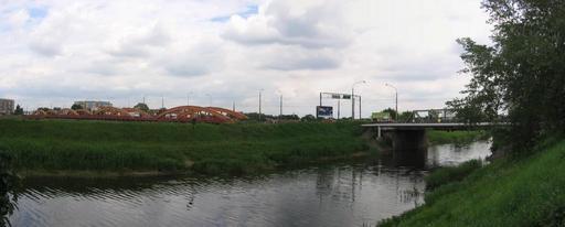 Keywords: MostyTrzebnickie-odPdZach.jpg Trzebnickie Bridges view from south west left orange bows of four-span Northern Bridge right one-span Southern Bridge Julo Trzebnicki Bridge