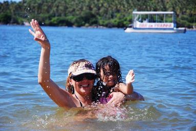 Keywords: mother and daughter beach vessel catamaran water sol nature swimming blue