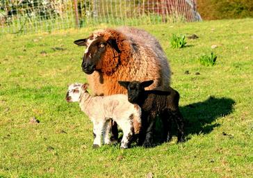 Keywords: mother sheep lambs black white farm