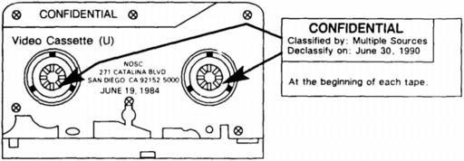 | Keywords: Motion picture films and video tapes (2).png en Each reel or tape has frames at the beginning and end with titles bearing the appropriate classificaton markigs The reel or cassette and the container are also marked with appropriate markings 1988-08 http //www dtic mil/dtic/tr/fulltext/u2/a200314 pdf Security Is Everybody's Business Technical Document 490 Revision B page A-25 Graydon J Gerber Naval Ocean Systems Center NOSC San Diego California PD-USGov-Military-Navy LicenseReview http //www dtic mil/dtic/tr/fulltext/u2/a200314 pdf Alan lorenzo 2013-04-16 thumb left 200px Video Casette Container This publication is a security overview It supersedes the NELC pamphlet Security Is Everybody ™s Business and NOSC Technical Document 490 Revision A Security Training It provides basic security principles and procedures to ensure uniformity and effectiveness in implementing the Naval Ocean Systems Center ™s security program <br>Note All classification markings on sample documents contained herein are for training purposes only; United States secrecy routine Uploaded with UploadWizard Motion pictures |