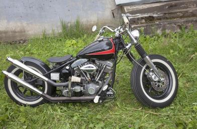 Keywords: motorcycle bike ring seat tank handlebars front fork custom constructed in it engine exhaust pipe