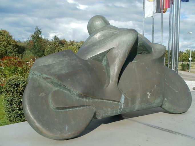 Keywords: motorcycle driver sculpture hockenheim bike motorbike rider vehicle race power dynamic metal bronze memorial race track